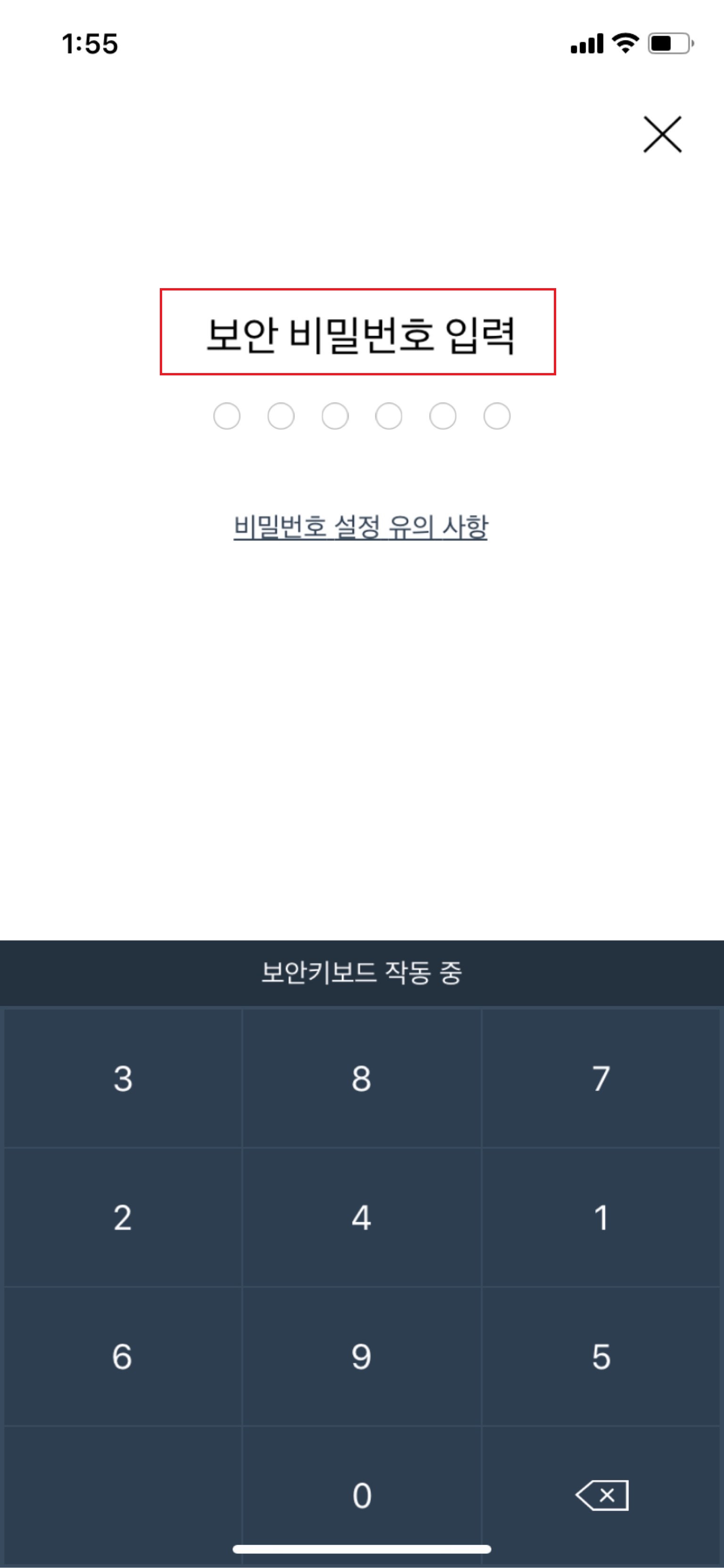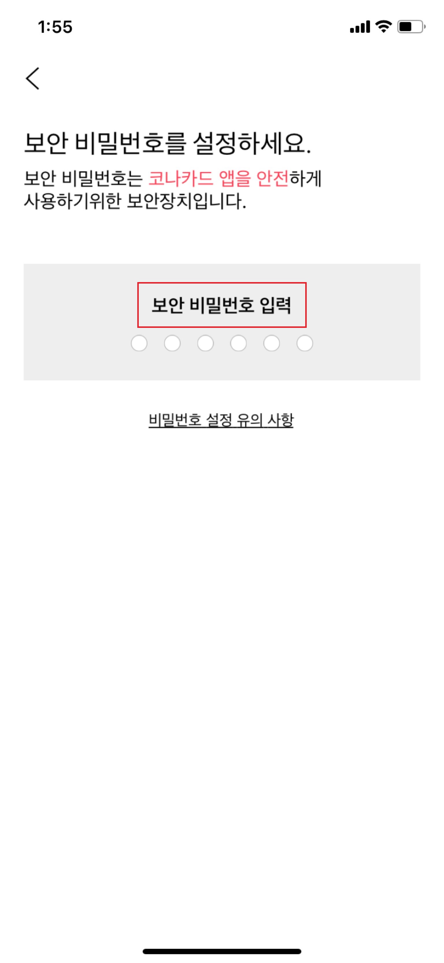 6. [보안 비밀번호] 숫자 6자리를 설정해주세요.