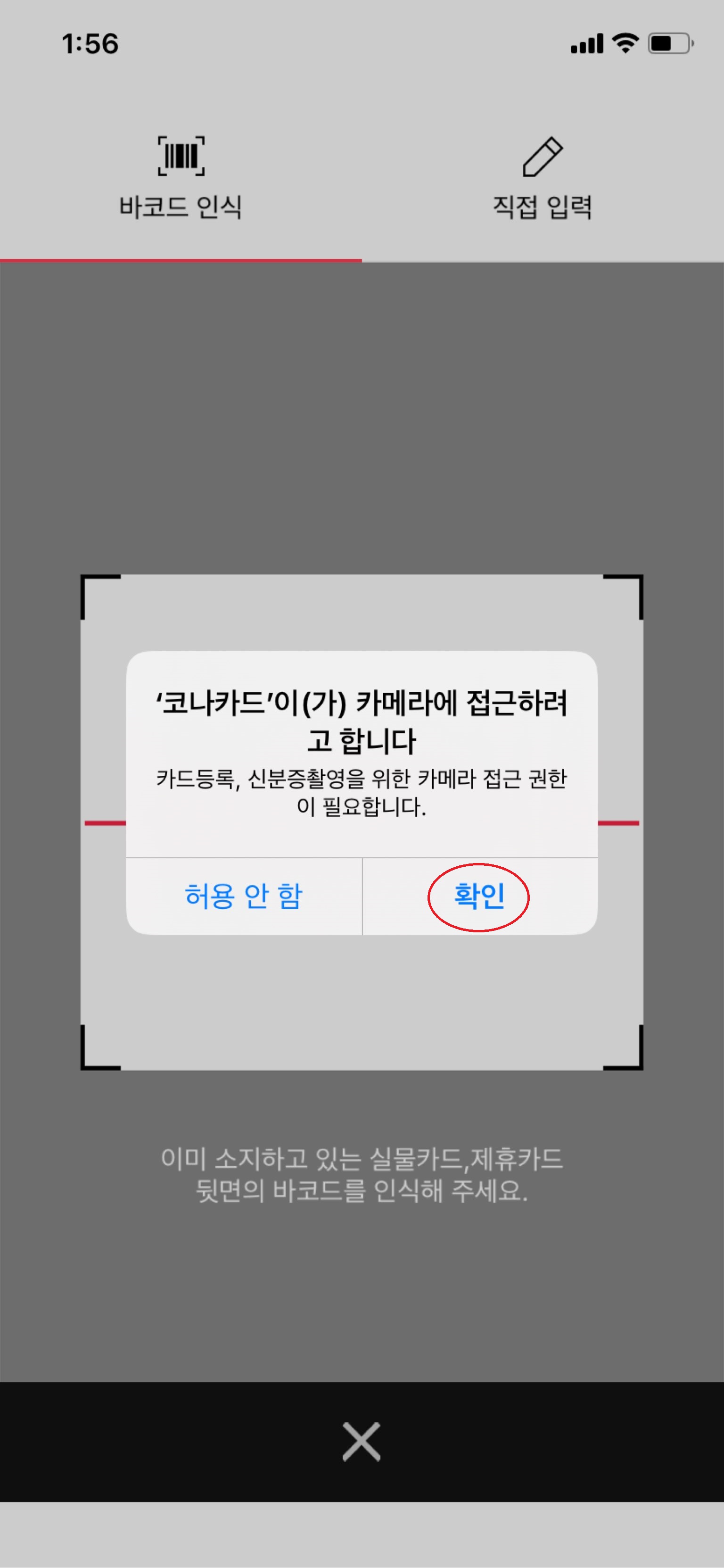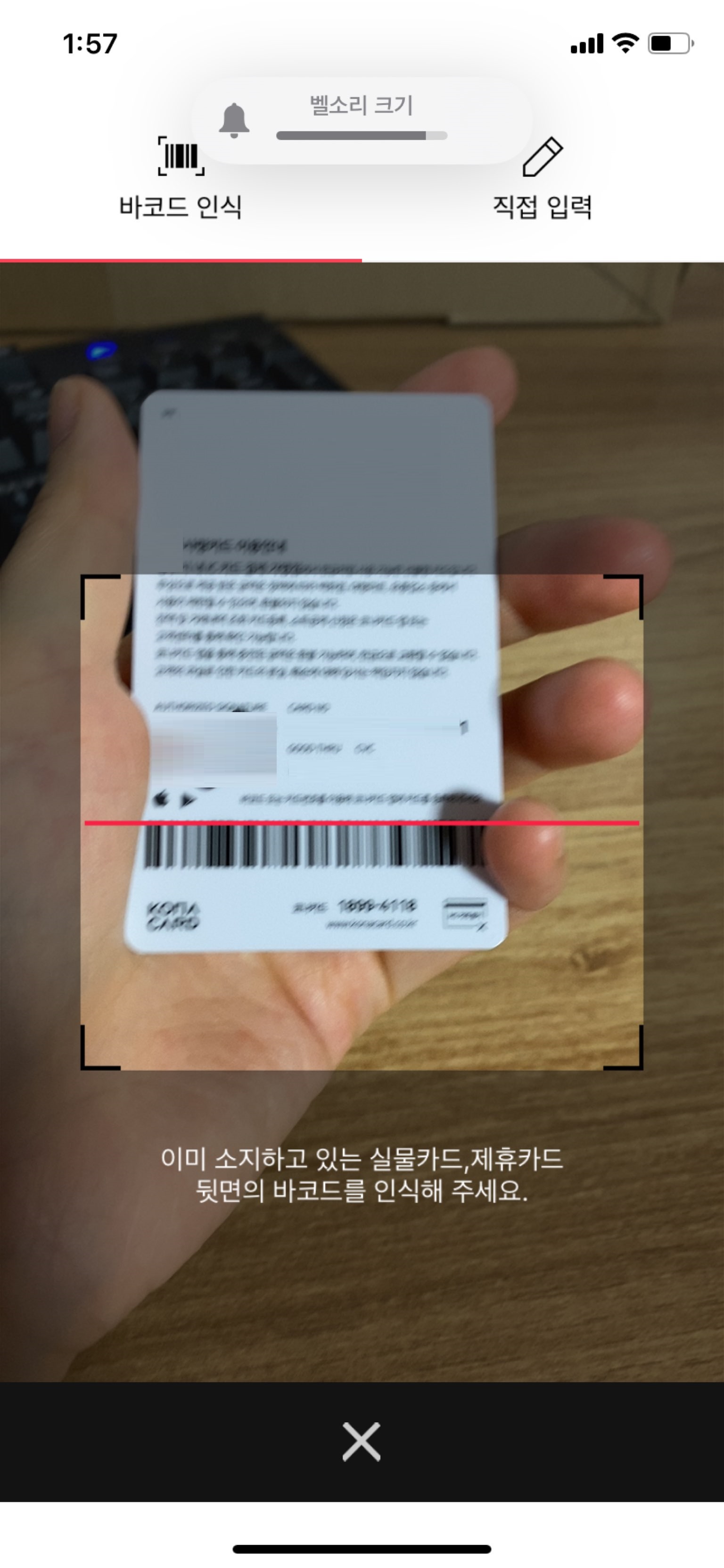 3. 선불카드 번호를 [바코드] 또는 [직접입력]하여 등록해주세요.