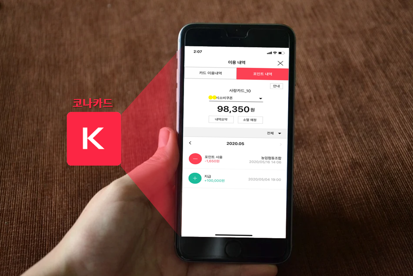 신용카드처럼 실시간 알람이 가능한 [코나 카드] 앱!