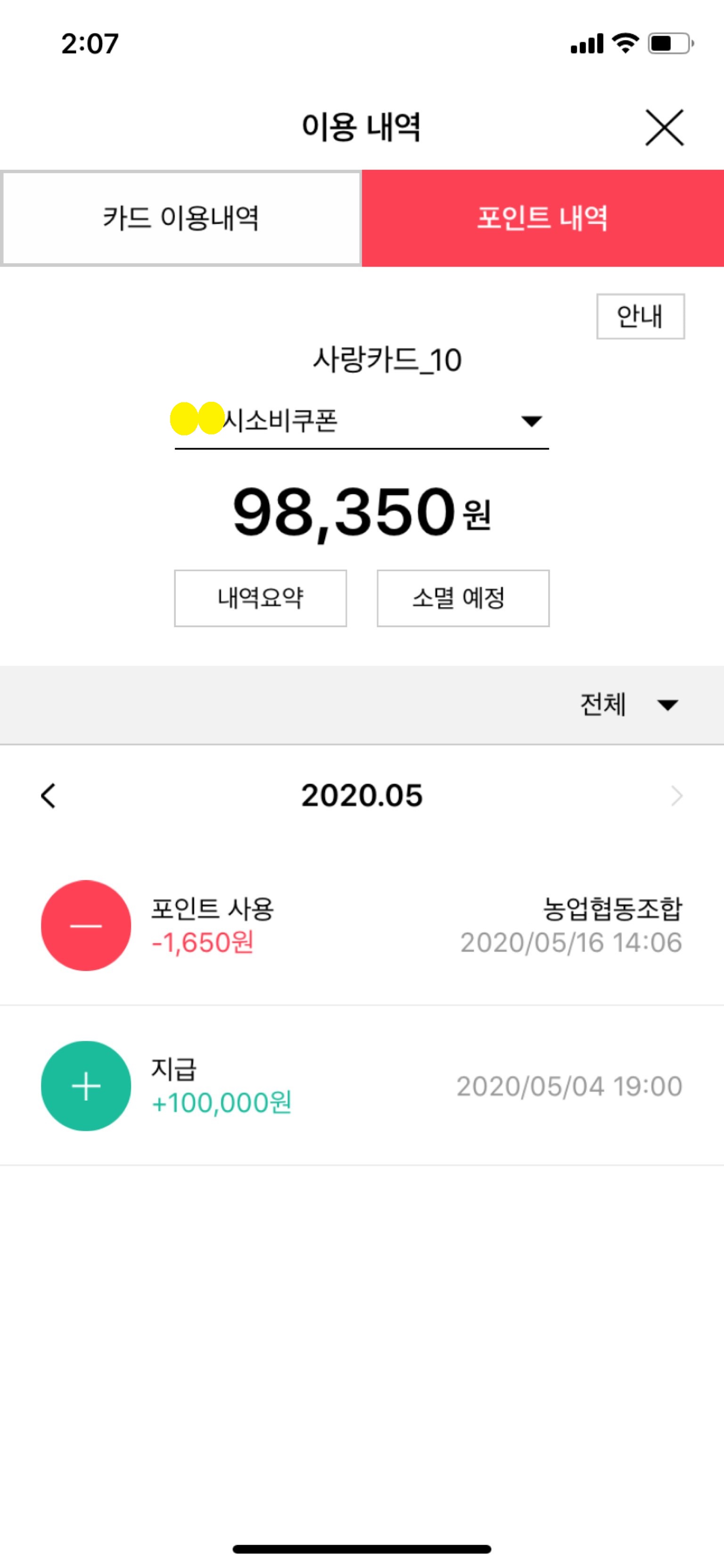 9. 상세 사용 내역 확인을 위해 [사용가능 금액],